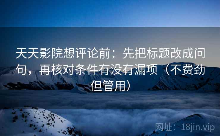 天天影院想评论前:先把标题改成问句,再核对条件有没有漏项(不费劲但管用)